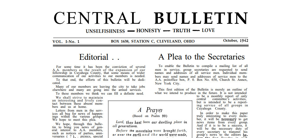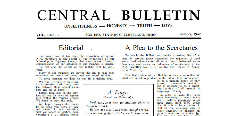 The Cleveland District Office of Alcoholics Anonymous was opened and functioning on February 7th, 1945.