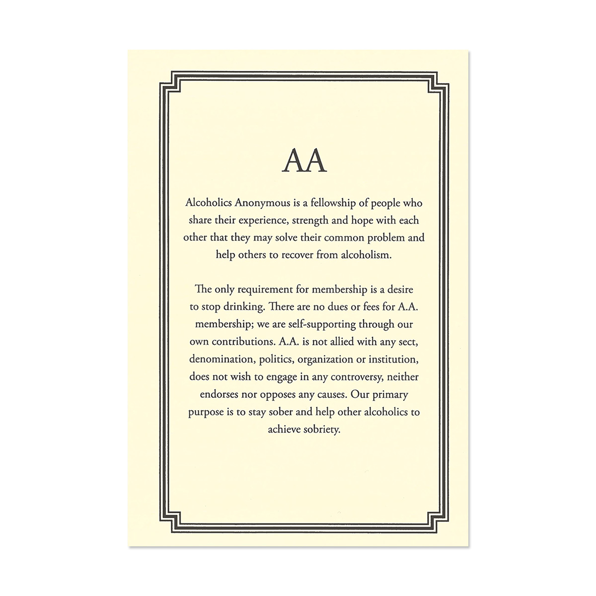 In the September, 1958, the preamble was first published by The Grapevine in its present form. It now appears in much of our literature to tell what A.A. is and does, as well as what it is not and does not. Today, it’s often read at the beginning of A.A. meetings. This is the new “people” version. – we do not yet carry the “men and women” version.