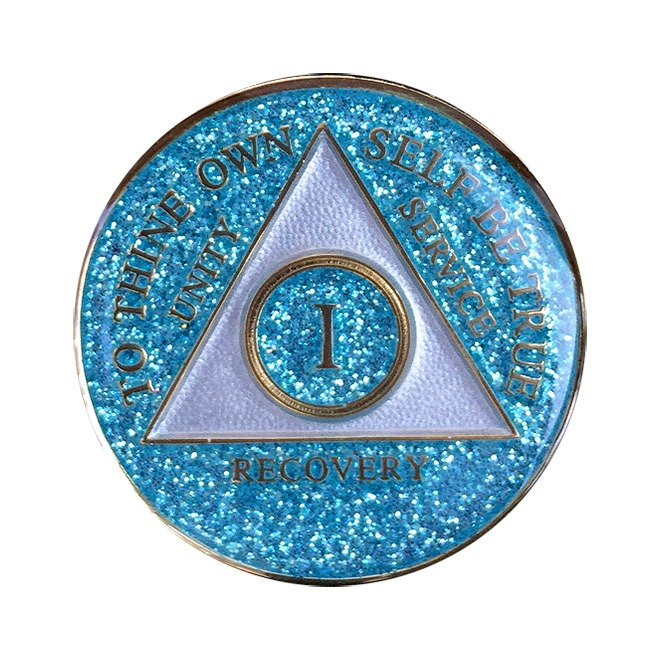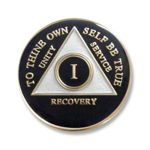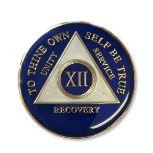 The Triplate Medallion features a unique design showcasing the iconic circle and triangle, symbolizing Alcoholics Anonymous principles. Crafted with high-quality materials and gold trim, it is a durable and meaningful keepsake for personal milestones. “Rarely have we seen….” on reverse side.