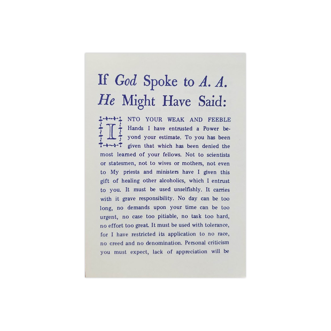 Into your weak and feeble hands I have entrusted a Power beyond your estimate.