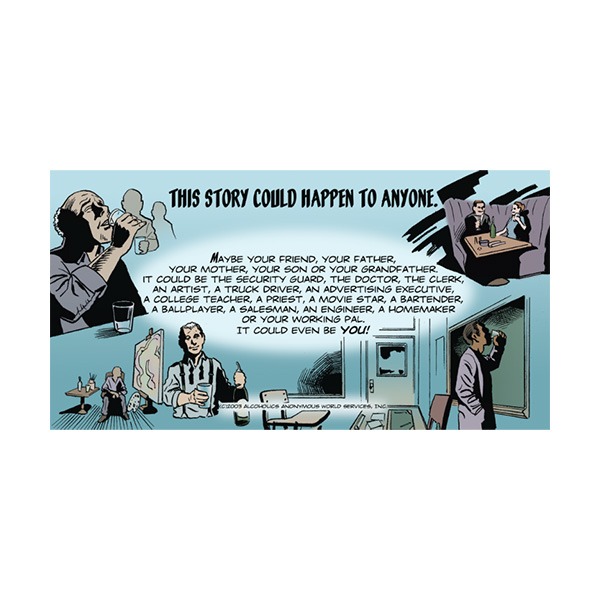 Cartoon pamphlet tells the dramatic story of a young construction worker and his drinking problem.