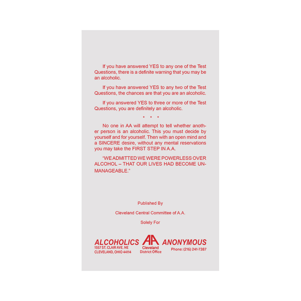 A favorite of old timers, this pamphlet contains 40 questions used to determine if one has drifted from social to pathological drinking.